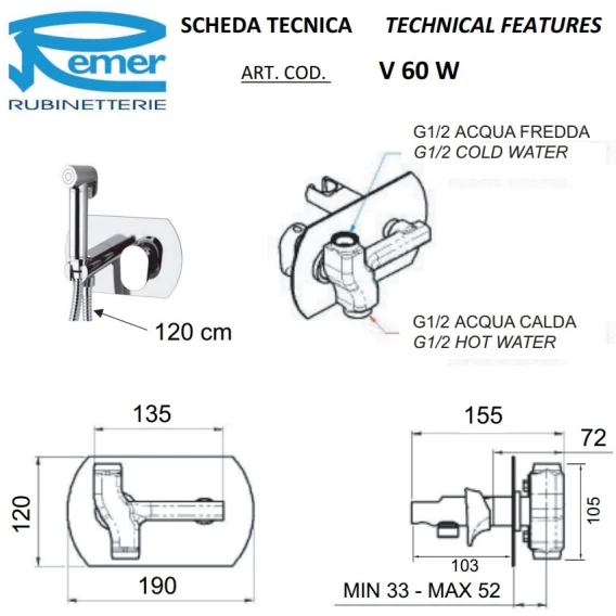 Гигиенический душ Remer Vanity V60W со смесителем, хром