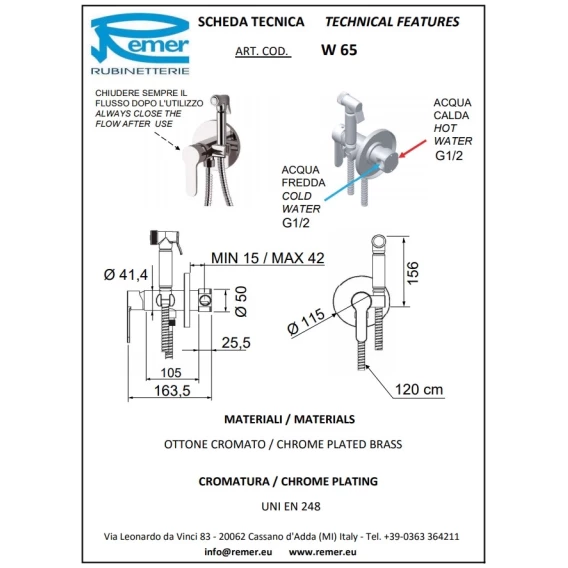 Гигиенический душ Remer Winner W65 со смесителем, хром