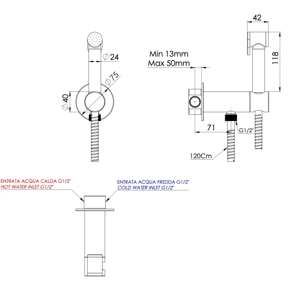 Душевой шланг, Душевая лейка, Подключение для душевого шланга с держателем, CoolStart, Скрытая монтажная часть, Смеситель