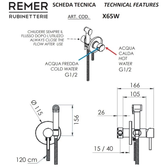 Гигиенический душ Remer X Style X65WBO со смесителем, белый матовый
