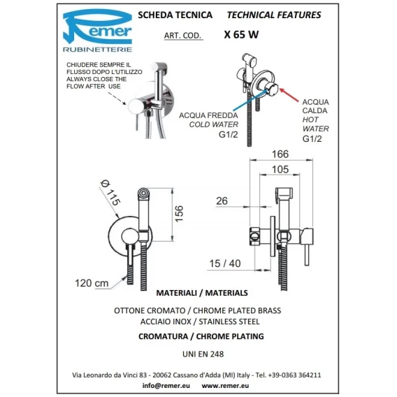 Гигиенический душ Remer X Style X65WXV со смесителем, нержавеющая сталь