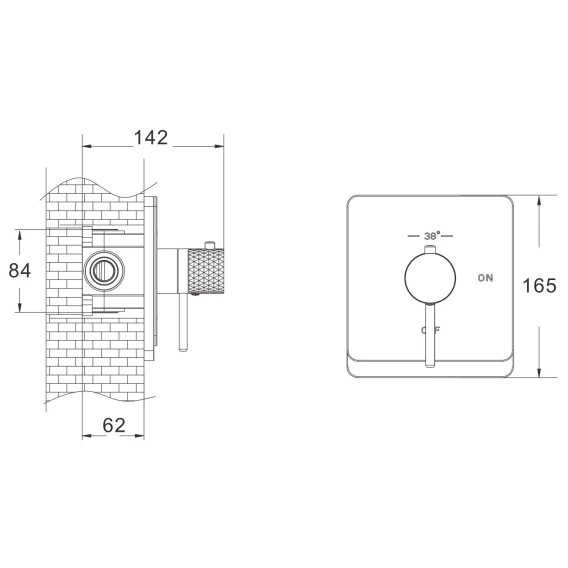 Душевой шланг, Душевая лейка, Держатель для душевой лейки, Подключение для душевого шланга, Скрытая монтажная часть, Термостат