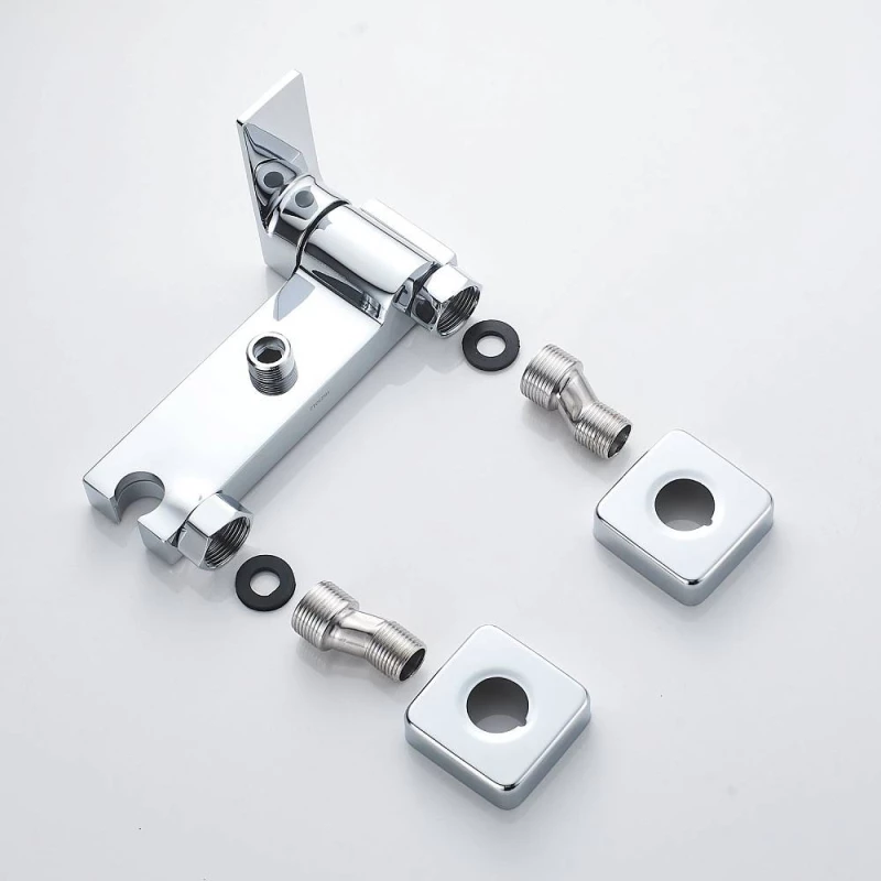 Металлическая розетка, Эксцентрики, Душевой шланг, Душевая лейка, Держатель для душевой лейки, Смеситель