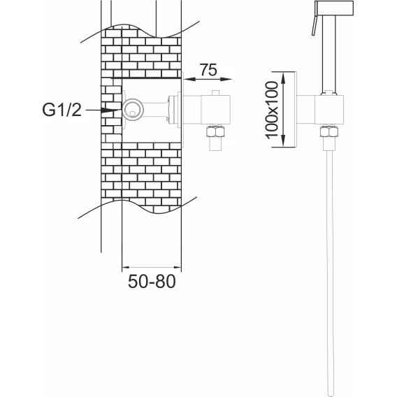 Душевой шланг, Душевая лейка, Подключение для душевого шланга с держателем, Скрытая монтажная часть, Термостат