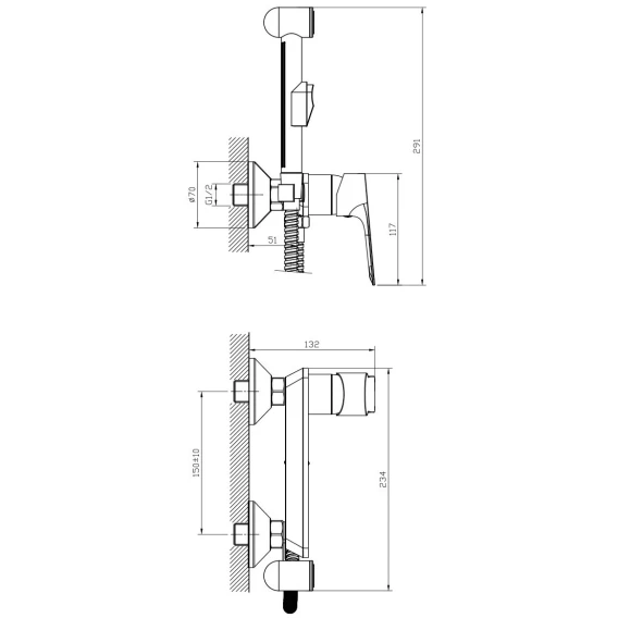 Гигиенический душ Rossinka RS27 RS27-52 со смесителем, хром