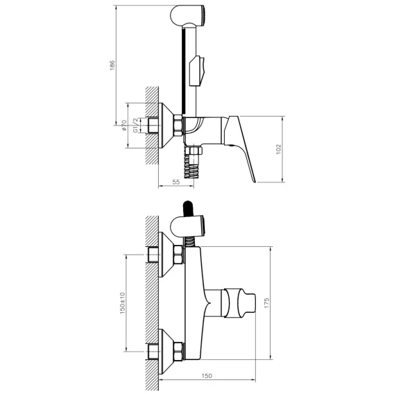 Гигиенический душ Rossinka RS29 RS29-52 со смесителем, хром