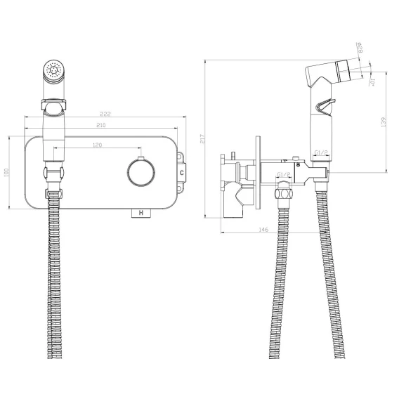 Душевой шланг, Душевая лейка, Подключение для душевого шланга с держателем, Скрытая монтажная часть, Термостат