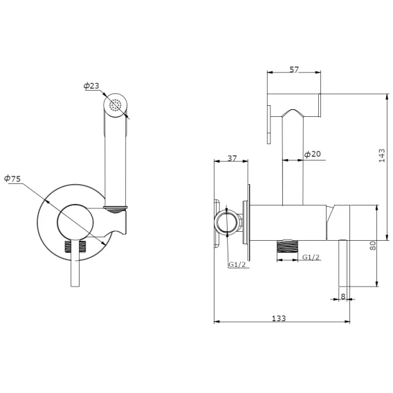 Гигиенический душ Shevanik S6805 со смесителем, хром