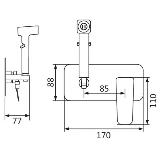 Душевой шланг, Душевая лейка, Держатель для душевой лейки, Скрытая монтажная часть, Смеситель