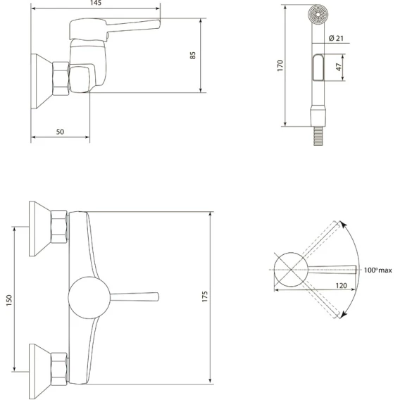 Металлическая розетка, Эксцентрики, Душевой шланг, Душевая лейка, Держатель для душевой лейки, Смеситель