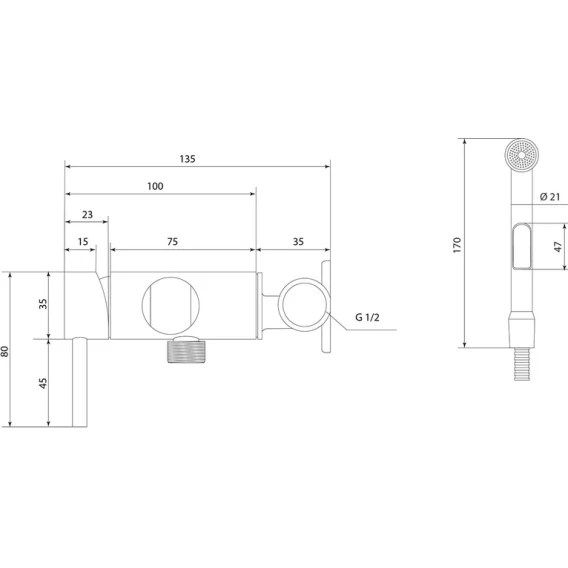 Душевой шланг, Душевая лейка, Держатель для душевой лейки, Подключение для душевого шланга с держателем, Скрытая монтажная часть, Смеситель