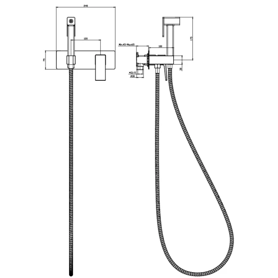 Душевой шланг, Душевая лейка, Подключение для душевого шланга с держателем, Скрытая монтажная часть, Смеситель