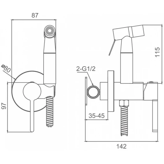 Душевой шланг, Душевая лейка, Подключение для душевого шланга с держателем, Скрытая монтажная часть, Смеситель
