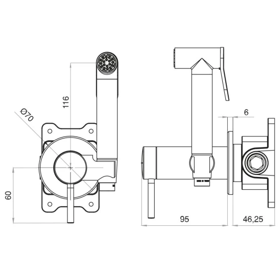 Душевой шланг, Душевая лейка, Подключение для душевого шланга с держателем, Скрытая монтажная часть, Смеситель