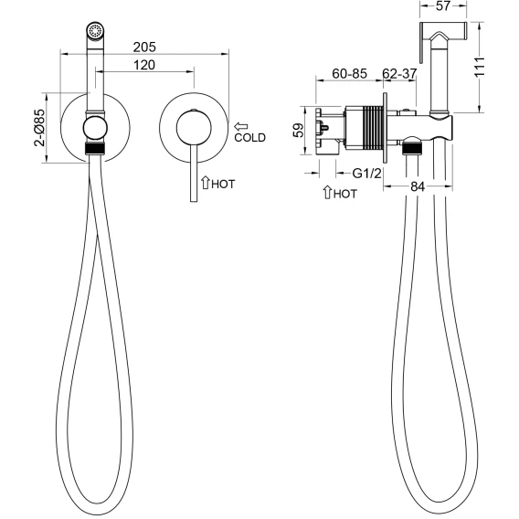 Душевой шланг, Душевая лейка, Подключение для душевого шланга с держателем, Скрытая монтажная часть, Смеситель