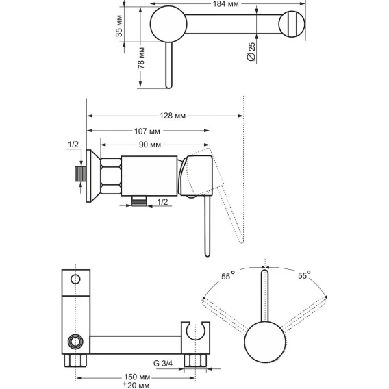 Металлическая розетка, Эксцентрики, Душевой шланг, Душевая лейка, Держатель для душевой лейки, Смеситель