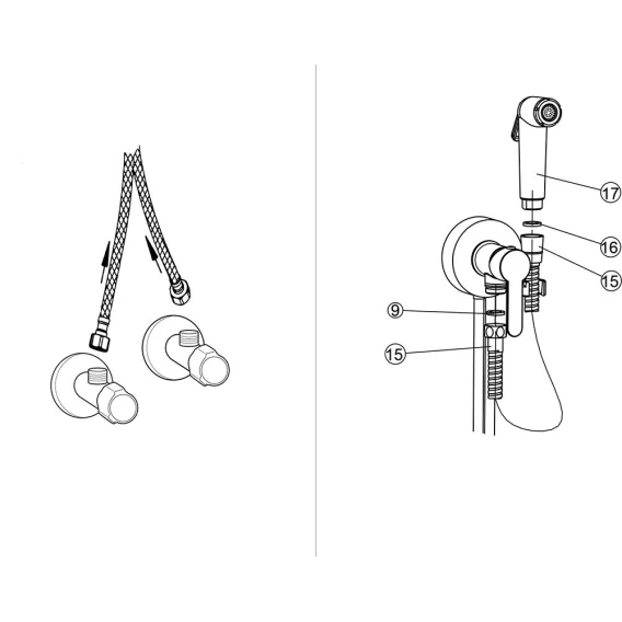 Смеситель с гигиеническим душем, который не нужно встраивать, он полностью внешний. Крепится снаружи на плитку (подводка с внешней стороны)