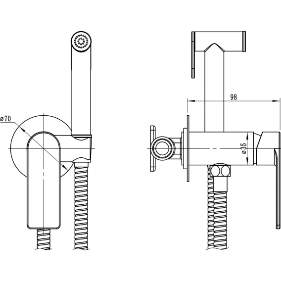 Душевой шланг, Душевая лейка, Подключение для душевого шланга с держателем, Скрытая монтажная часть, Смеситель