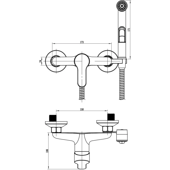 Гигиенический душ Voda Tide TD80H со смесителем, хром