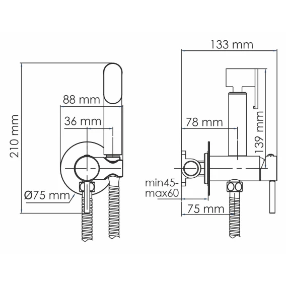 Душевой шланг, Душевая лейка, Подключение для душевого шланга с держателем, Скрытая монтажная часть, Смеситель
