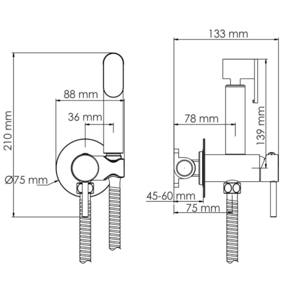 Душевой шланг, Душевая лейка, Подключение для душевого шланга с держателем, Скрытая монтажная часть, Смеситель
