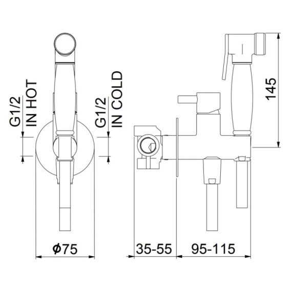 Душевой шланг, Душевая лейка, Подключение для душевого шланга с держателем, Скрытая монтажная часть, Смеситель