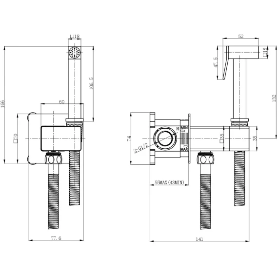 Душевой шланг, Душевая лейка, Подключение для душевого шланга с держателем, CoolStart, Скрытая монтажная часть, Смеситель
