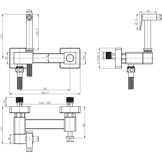 Гигиенический душ WeltWasser Higi Q02 GL 10000013678 CoolStart, со смесителем, золотой