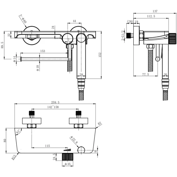 Металлическая розетка, Эксцентрики, Душевой шланг, Душевая лейка, Держатель для душевой лейки, Полочка, CoolStart, Держатель туалетной бумаги, Смеситель
