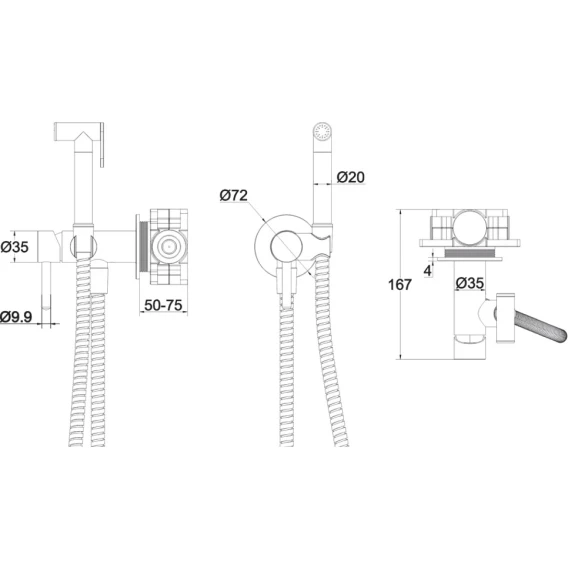 Душевой шланг, Душевая лейка, Подключение для душевого шланга с держателем, Скрытая монтажная часть, Смеситель