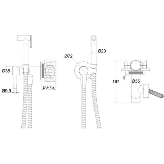 Душевой шланг, Душевая лейка, Подключение для душевого шланга с держателем, Скрытая монтажная часть, Смеситель