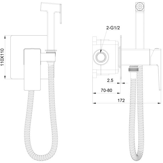 Гигиенический душ Wonzon & Woghand Cube 2.0 WW-88829068-MB со смесителем, черный матовый