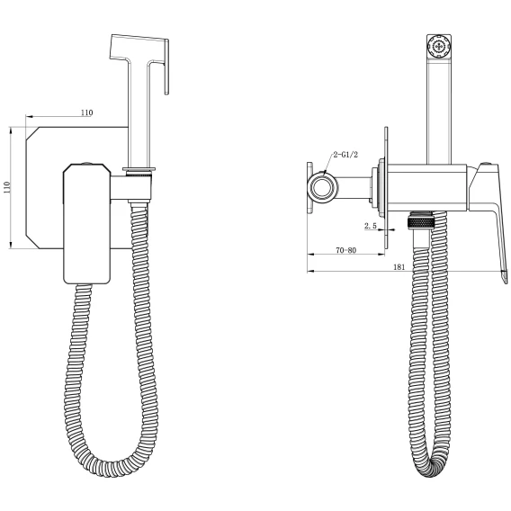 Гигиенический душ Wonzon & Woghand Diamond WW-88829011-MB со смесителем, черный матовый
