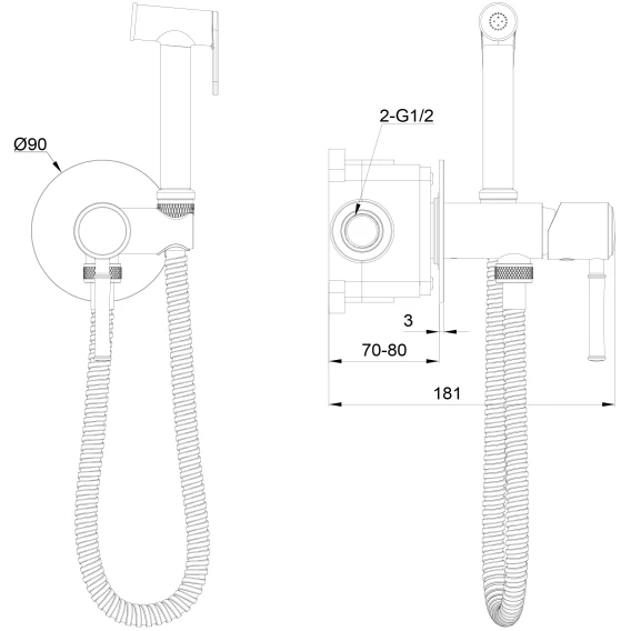Душевой шланг, Душевая лейка, Подключение для душевого шланга с держателем, Скрытая монтажная часть, Смеситель