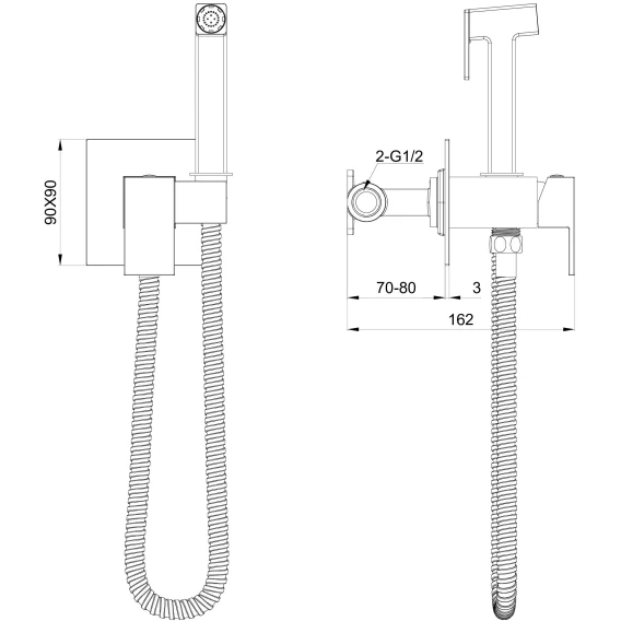 Душевой шланг, Душевая лейка, Подключение для душевого шланга с держателем, Скрытая монтажная часть, Смеситель