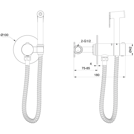 Душевой шланг, Душевая лейка, Подключение для душевого шланга с держателем, Скрытая монтажная часть, Термостат