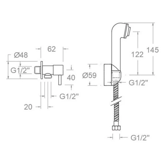 Душевой шланг, Душевая лейка, Держатель для душевой лейки, Угловой вентиль