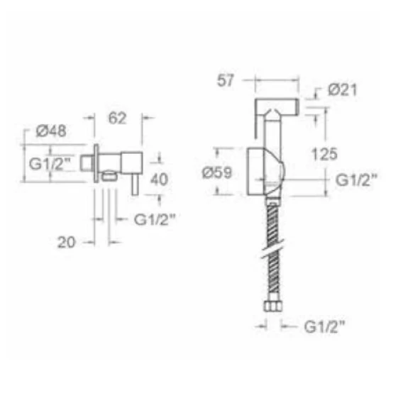 Душевой шланг, Душевая лейка, Держатель для душевой лейки, Угловой вентиль
