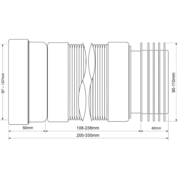 Фановая раздвижная (L200-330мм) гофрированная труба с манжетой; вход Ду=97-107мм; выход вставляется внутрь 4"/110мм трубы