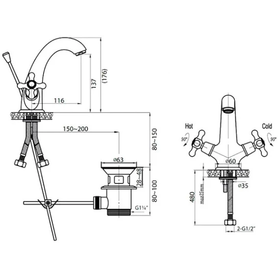 Крепление, Аэратор, Гибкая подводка, Донный клапан