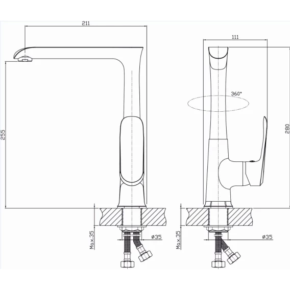 Душевая система Wonzon & Woghand WW-B3517-MB 255 мм, со смесителем, черный матовый
