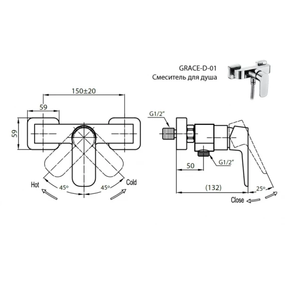 Смеситель для душа Cezares Grace GRACE-C-D-01