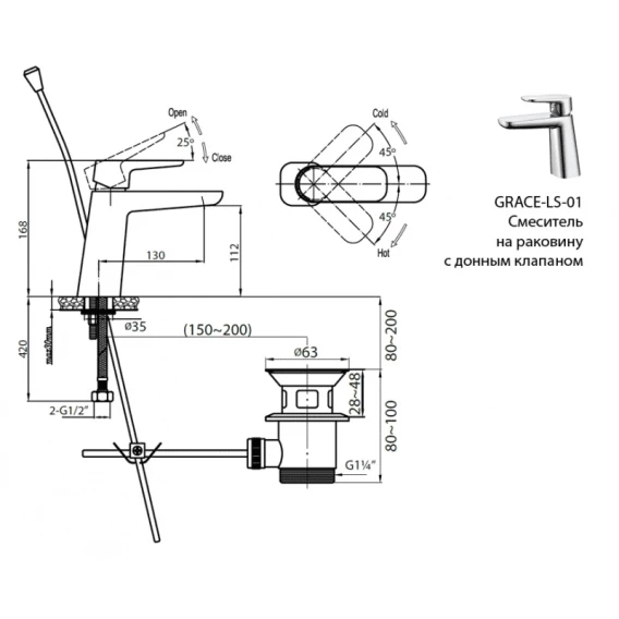 Смеситель для раковины Cezares Grace GRACE-C-LS-01-W0
