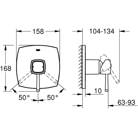 • с настенными розетками GROHE FastFixation(скрытые эксцентрики, уплотнение, скрытый монтаж)