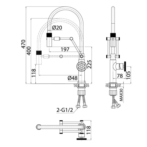 Крепление, Аэратор, Гибкая подводка, Душевая лейка