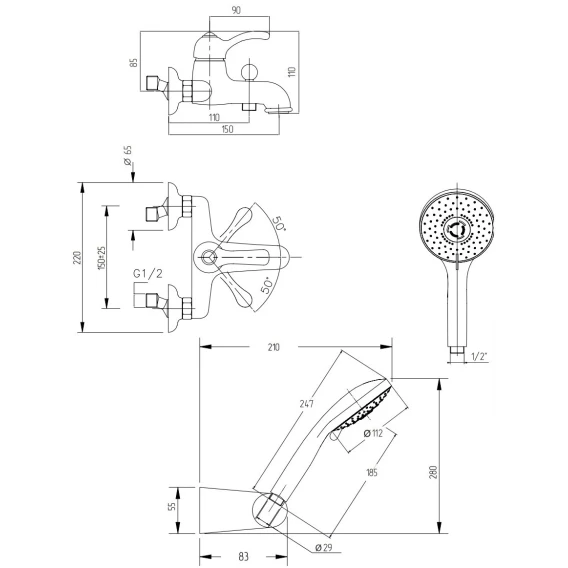 Аэратор, Металлическая розетка, Эксцентрики, Душевой шланг, Душевая лейка, Держатель для душевой лейки