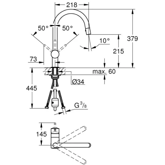 • гибкая подводка , система быстрого монтажа , минимальное давление 1,0 бар