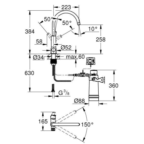 • GROHE Blue Смеситель однорычажный для мойки с функцией очистки водопроводной воды