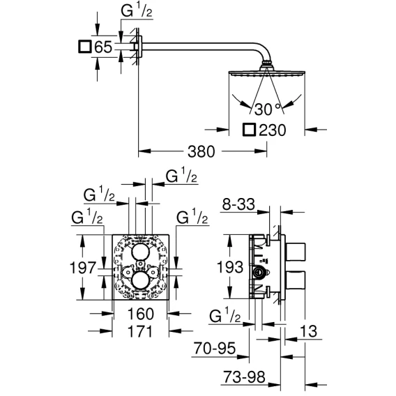 Верхний душ, Скрытая монтажная часть, Кронштейн, Термостат