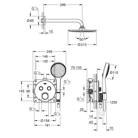 Душевой комплект 210 мм Grohe Grohtherm SmartControl 34743000